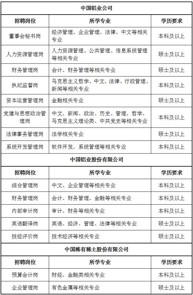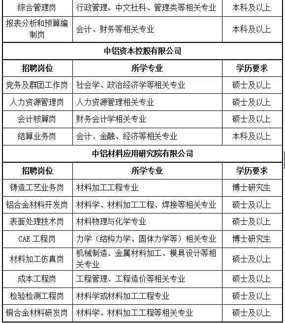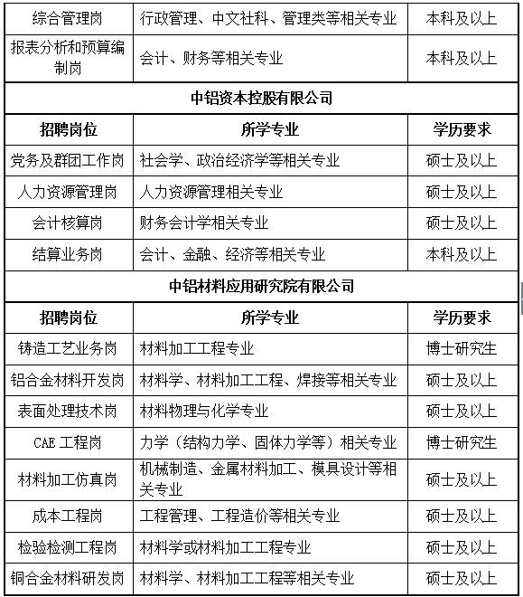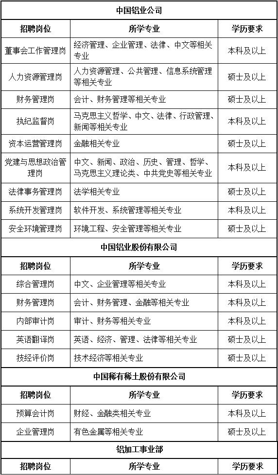 中国铝业公司2018年应届高校毕业生招聘公告