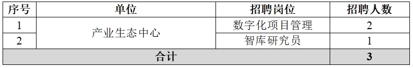 中铝智能科技发展有限公司(简称中铝智能)是中国铝业集团有限公司(简称中铝集团)全资子公司,是中铝集团数字化转型的承载主体,主要业务包括应用软件、云计算、信息安全技术的开发及技术服务;计算机信息系统集成及相关服务;智能装备、自动化设备、检测设备、仪器仪表、机器人的研发及技术咨询服务;数字化系统运维服务;数字化项目实施等。根据工作需要,现面向社会公开招聘中铝智能部分岗位人员,现将有关事项公告如下: